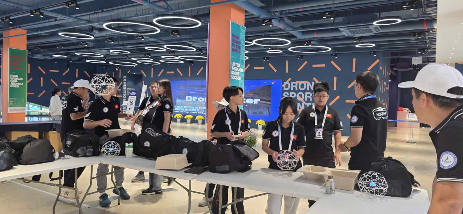 Drone soccer là minh chứng hoàn hảo cho STEM Drone, nơi học sinh sử dụng drone để "đá bóng" trong sân đấu hình cầu. Tại Drone Soccer Việt Nam, chúng tôi đã triển khai chương trình này từ năm 2023, với sự hỗ trợ từ FIDA. Học sinh tham gia STEM Drone sẽ học cách áp dụng khoa học để tối ưu hóa hiệu suất drone, công nghệ để lập trình tự động, kỹ thuật để sửa chữa và toán học để tính toán chiến lược.