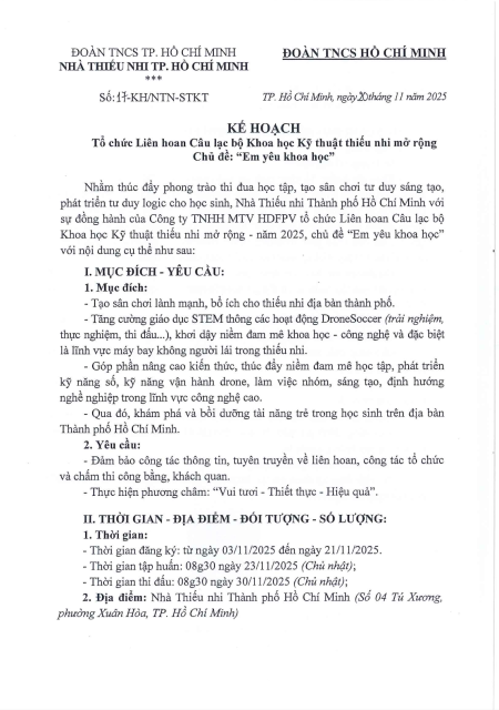 Hòa chung không khí sôi nổi của phong trào khoa học kỹ thuật thiếu nhi thành phố, Ban Tổ chức xin trân trọng công bố Bảng thi đấu chính thức của "Liên hoan Câu lạc bộ Khoa học Kỹ thuật thiếu nhi mở rộng - Năm 2025".